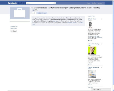 Finally, we uncovered an unofficial page for the Consumer Products Safety Commission Injury Coder (Nationwide Children’s Hospital), which features no admirers or content of any kind.