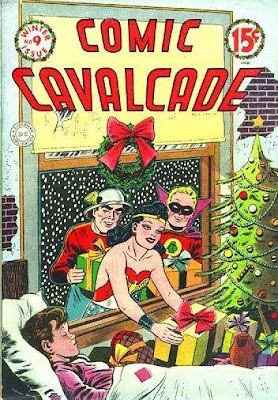 We here at Abnormal Use wish you and your family a very Merry Christmas. We may be cynical, but even we are not immune to those wistful moments of Christmas magic. Were you to send us a request to admit that Christmas is a splendid time of year full of fine sentiment and warm feelings, we could not in good faith deny it. But we’d probably throw in a token objection for vagueness just to preserve our street cred. Above, you’ll find the cover of Comic Cavalcade # 9, published way back in 1945 and featuring, once again, almost ancient versions of The Flash, Wonder Woman, and the Green Lantern. We’re a little distressed that those heroes appear to be breaking and entering a local home and usurping the duties traditionally reserved for Santa.