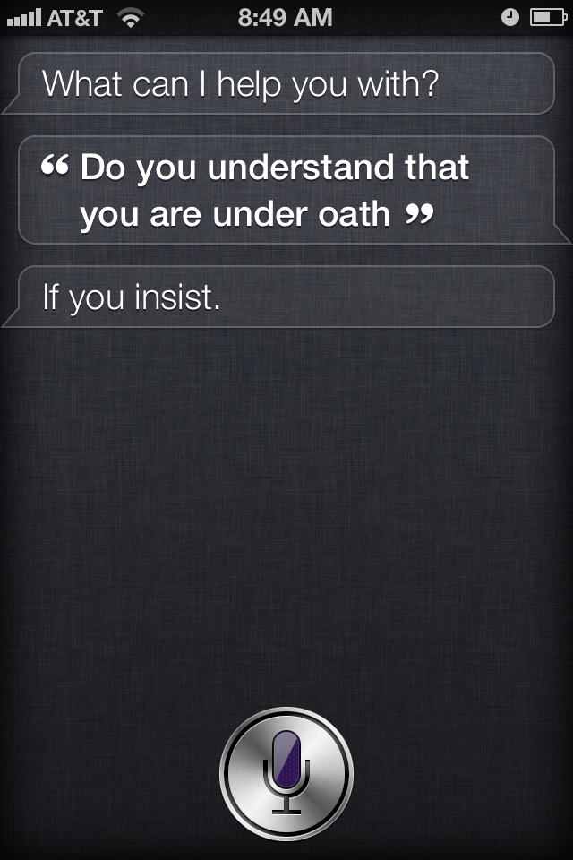 Someone has made a federal case out of Siri. Friend of the blog Kevin Underhill, author of the very funny Lowering the Bar legal humor blog, directs our attention to a new proposed class action in which “a New York man alleges that the virtual assistant Apple built into his iPhone 4S doesn’t work as advertised.” (See Kevin’s post “Lawsuit Claims Siri Doesn’t Know What She’s Talking About,” March 30, 2012).  The plaintiff filed his suit in federal court in California.