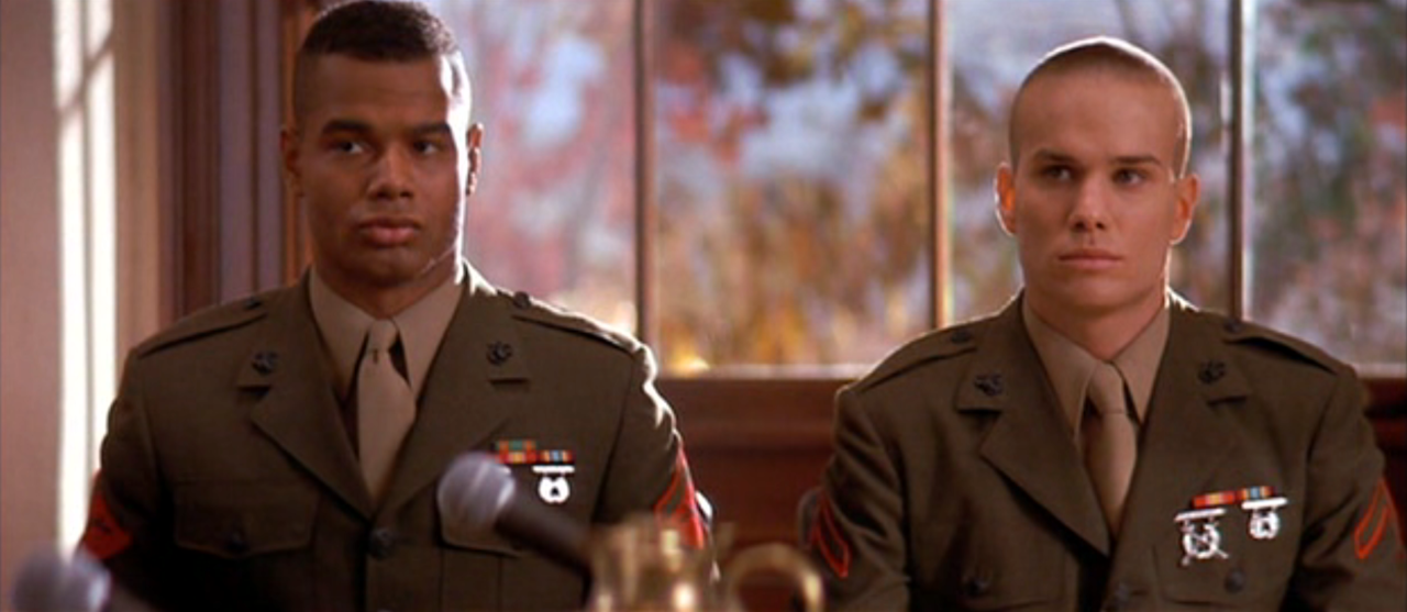 JM: Well, the Marine stuff, that initially I had worked on a military movie called Cadence that was directed by Martin Sheen that starred Martin Sheen, Charlie Sheen, and Larry Fishburne. It was shot in Canada, and we actually had to shoot it twice. So, I actually went through real two boot camps to prepare for that movie, which was pretty much the kind of thing that you don’t forget. Yeah, I had had it pounded in for many months before the shoot of Cadence. I was a little rusty by the time A Few Good Men came around, but it came back pretty quickly. Somebody on the set actually came up to me, I think it was the first day, and said, “You’ve got to get these guys, they’re marching’s horrible. ” And I go, “You guys need to do this and that to march properly.”