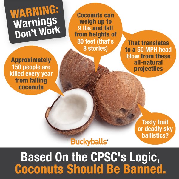 Several weeks ago, we here at Abnormal Use lamented the death of Buckyballs, the controversial desktop magnet, after its two year fight with the Consumer Product Safety Commission (“CPSC”). The Buckyballs saga grabbed our attention from the outset after Buckyballs’ CEO Craig Zucker publicly ridiculed the CPSC’s draconian measures. As traditionally harsh critics of the CPSC, we applauded Zucker’s efforts and were saddened when Zucker finally succumbed to the CPSC back in May.